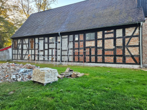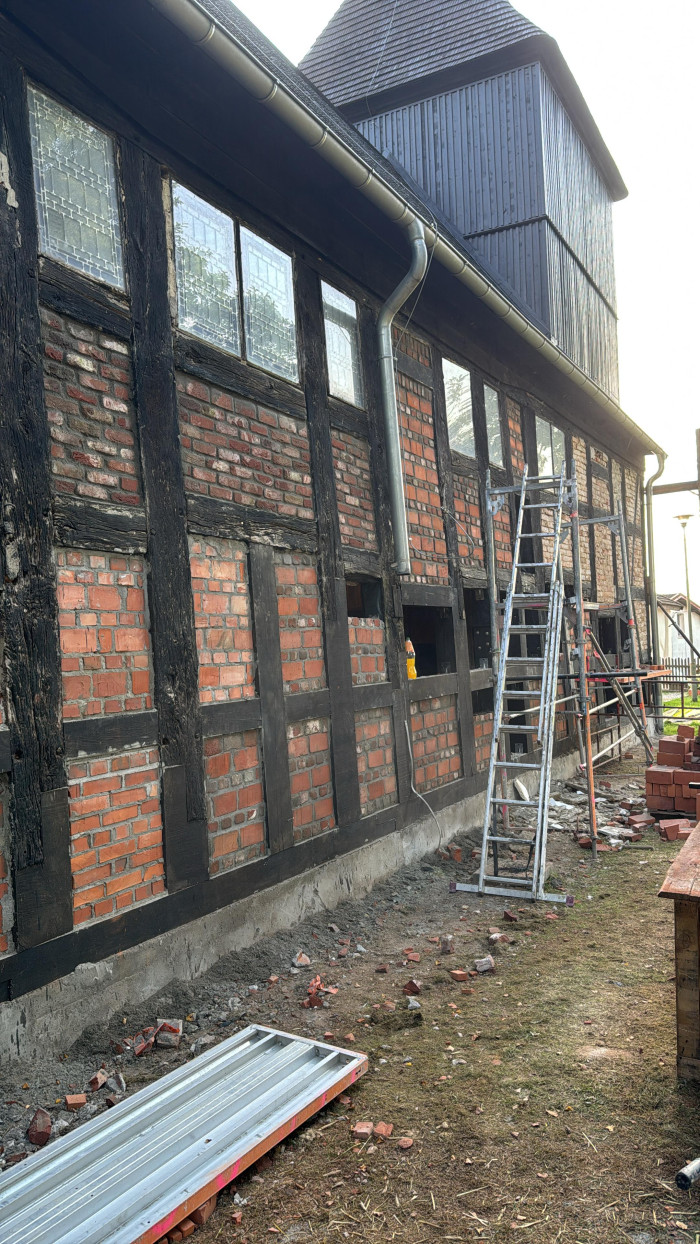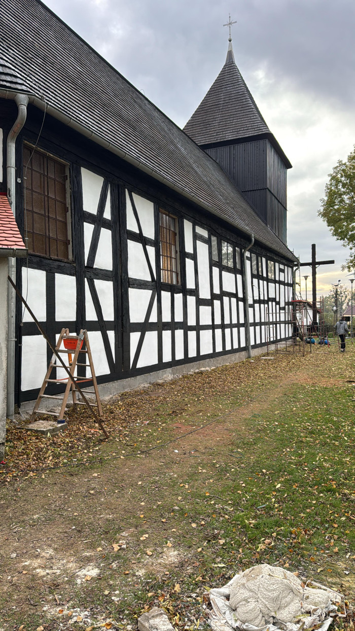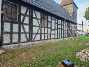 Naszym zadaniem było odnowienie ścian z muru pruskiego wykonanego z dębiny, renowacja konstrukcji oraz obicia wieży kościelnej, a także odświeżenie tynków wewnętrznych. Każdy etap wymagał uważnej pracy i dbałości o zachowanie historycznego charakteru obiektu. Dzięki zaangażowaniu całego zespołu oraz dobrej współpracy z kierownikiem budowy wszystkie prace zostały ukończone terminowo i bez usterek, co było dla nas ogromnym powodem do dumy.